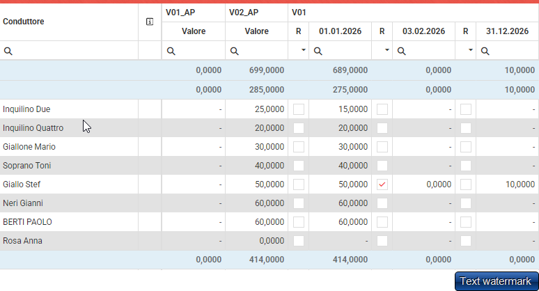 - Visualizzare i millesimi attribuiti a tutte le anagrafiche collegate alle UI.