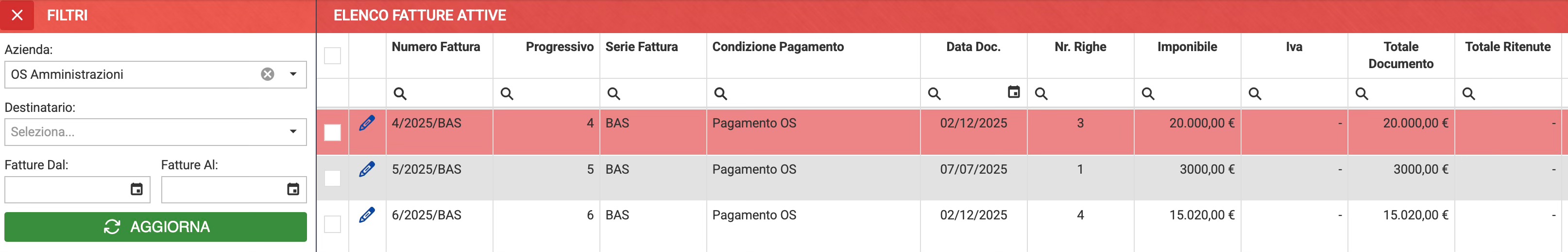 Nel caso di errori rilevati, la Fattura è evidenziata da una banda rossa.